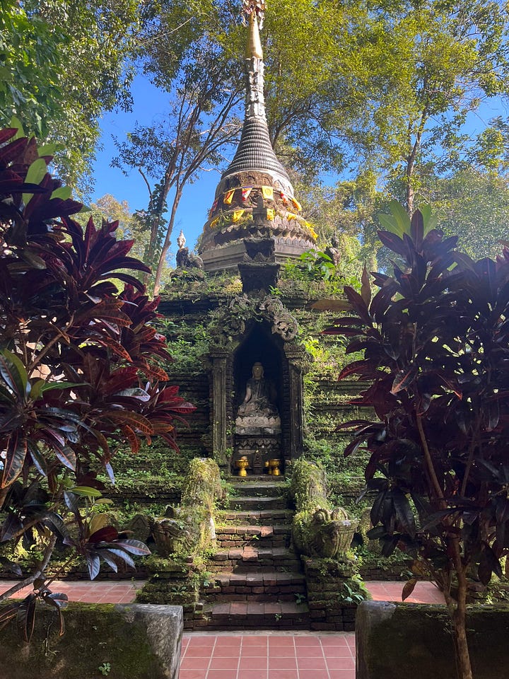 Walking around the temple grounds, we felt immediately at ease. The temple had a zen garden, multiple waterfalls and tributaries cutting through, and chedis (stupas) covered in thick moss.