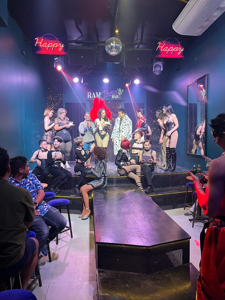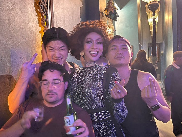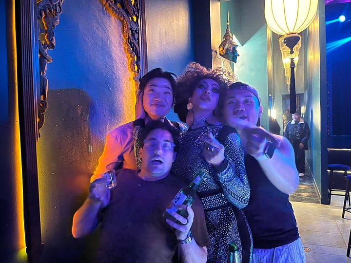 And topping it all off, the host of the restaurant, sashayed around working the audience while turning tables to ensure each seat was full (and even caring for a drunk man asleep in his seat).