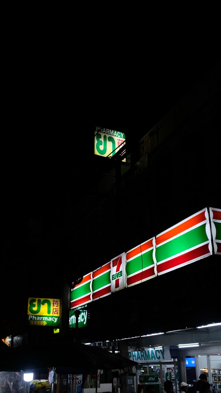 And after a certain hour, the 7-11 is most busy with younger tourists lingering outside, chugging cheap Chang beers before they join the going out out ranks.