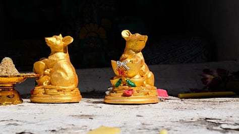 Weighing its entrance fee, we moved towards the side of the temple hoping we could get the gist from the outer wall. While peering over the side, we saw multiple people approach one of the temple’s statues, a rat, about 3 feet high. They bowed their heads and then moved closer to whisper into the rat’s ears.