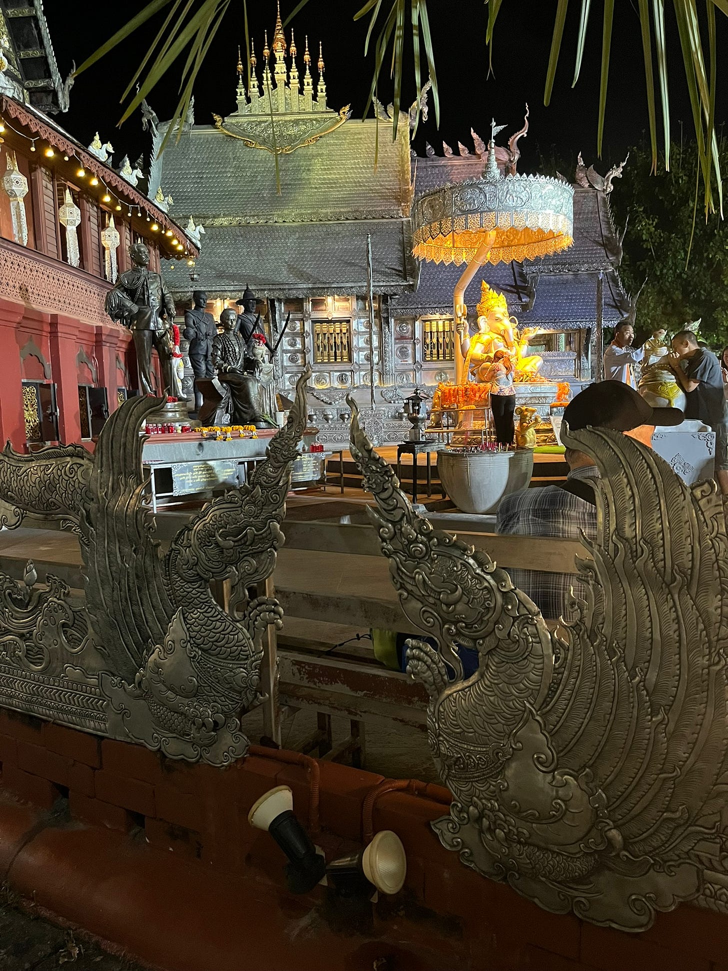 Another temple adventure came as a surprise night market interlude. As we were avoiding the crowds, we accidentally stumbled upon Wat Sri Suphan, colloquially referred to as the Silver Temple since it’s coated in plates of silver.