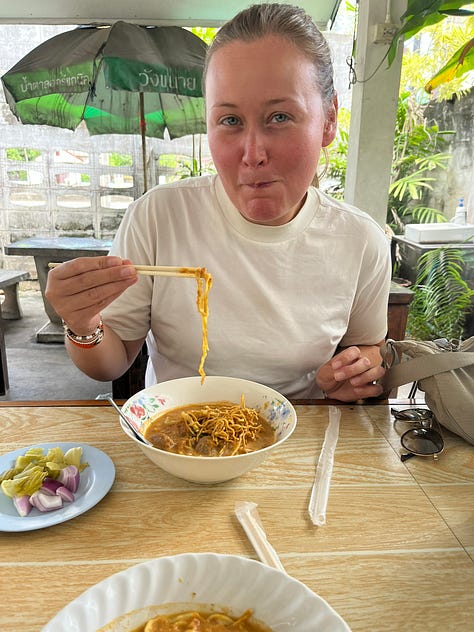 Over our few days, we sought out multiple khao soi establishments since it is one of our favorite things to order from Dannee Thai (our neighborhood go-to) and since Chiang Mai is where Caleb’s love of khao soi began ten years ago.