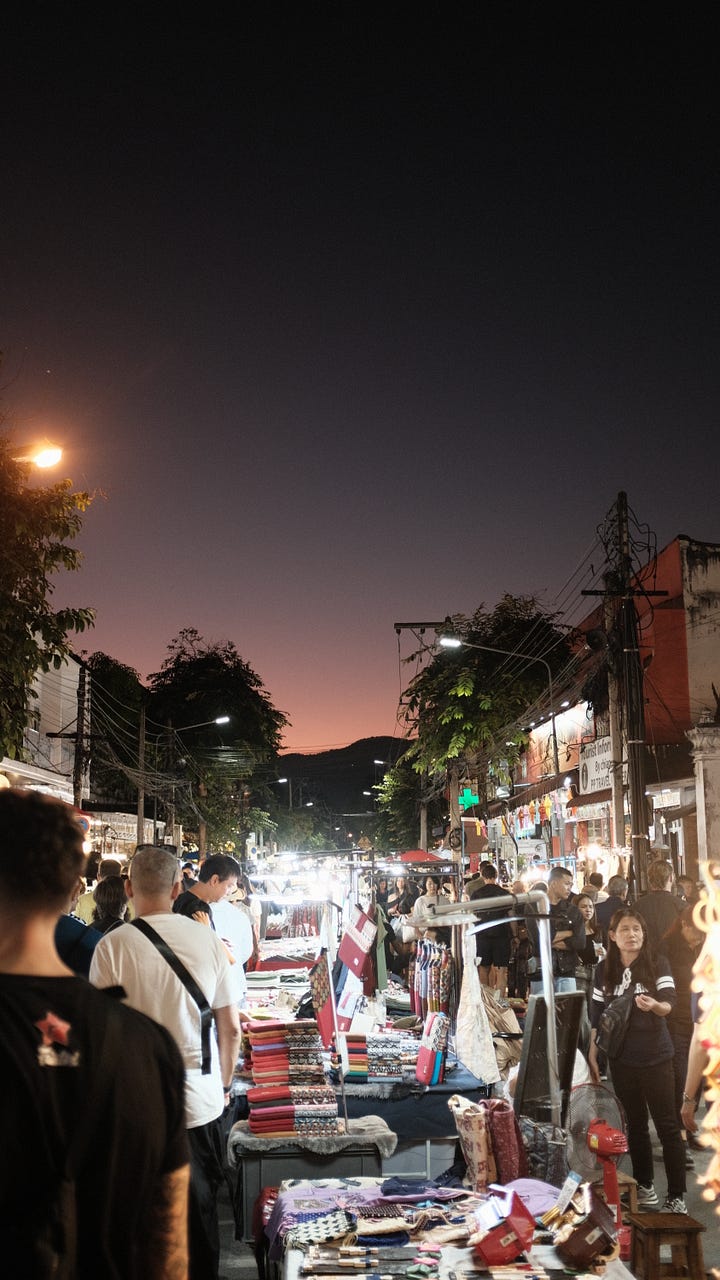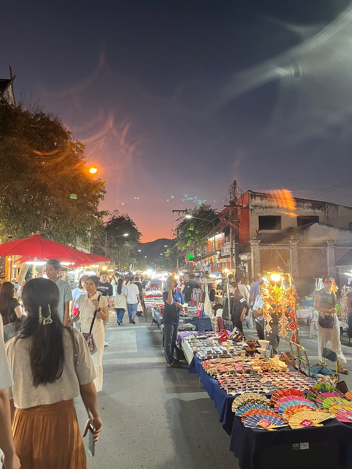 Arriving on a Thursday, we had purposefully timed our visit so that we could go to the Friday, Saturday, and Sunday night markets - the biggest in Chiang Mai and some of the biggest in Thailand.